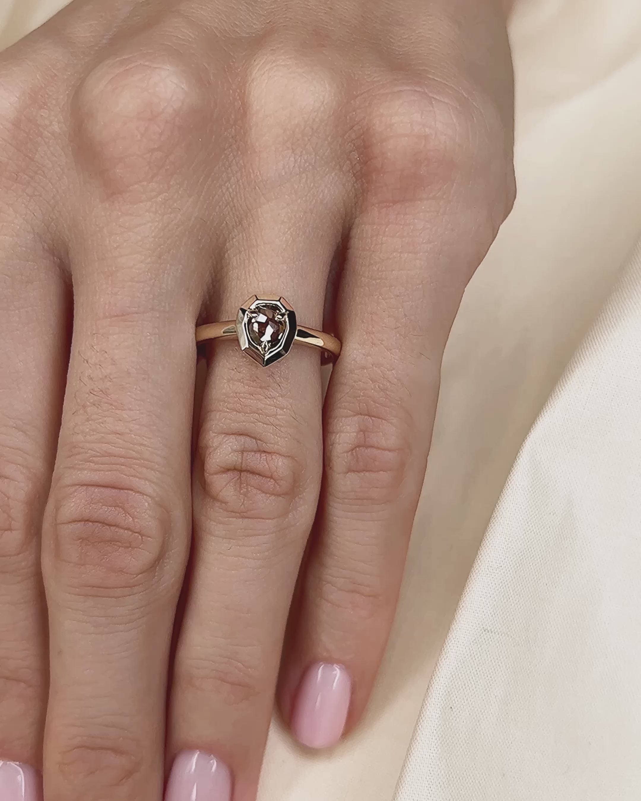 The Zaria ring is the epitome of elegance. Available in a number of styles, every one is a contemporary classic. This piece features a shield shape but can be customised and made to order. Choose from a range of freeform rose cut diamonds and metals to create a ring that only you can own.
