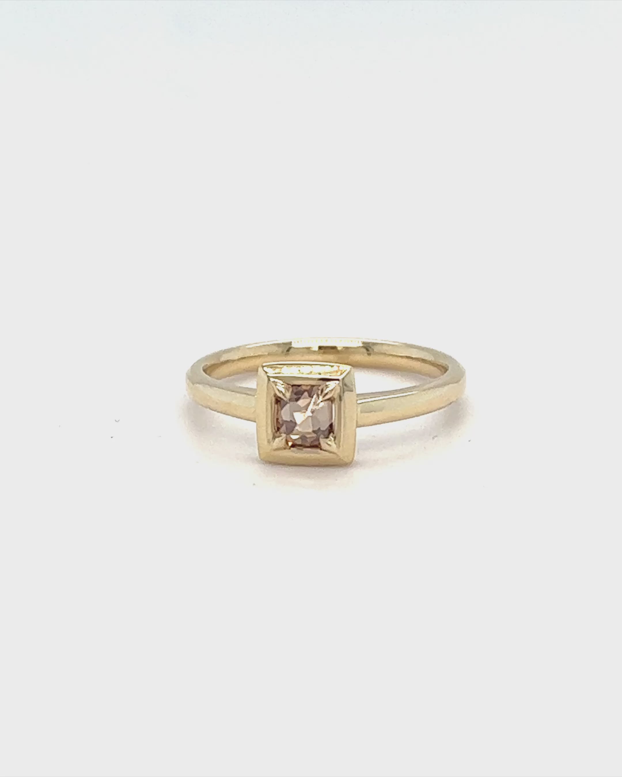 The Zaria ring is the epitome of elegance. Available in a number of styles, every one is a contemporary classic. This piece features a square shape but can be customised and made to order. Choose from a range of freeform rose cut diamonds and metals to create a ring that only you can own.
